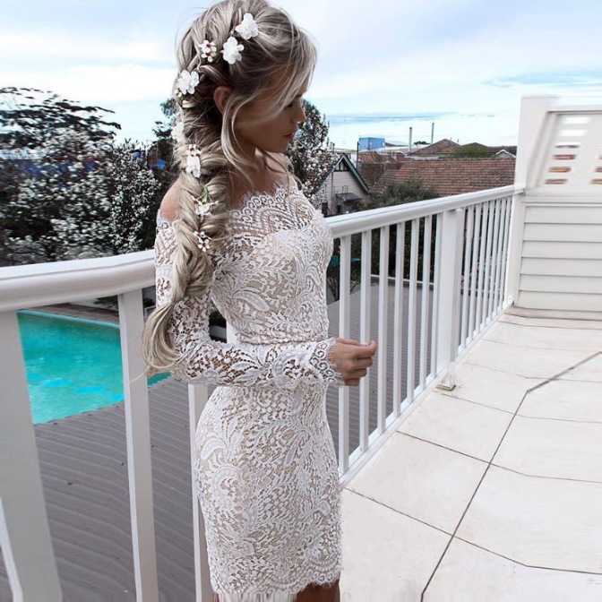 White One Shoulder Cut Out Waist Bodycon Mini Dress. White Off Shoulder Long Sleeves Wedding DressesLace Bridal Dresses. This dress has the most amazing embroidered lace illusion sleeves that lead into a small illusion band of lace at the.